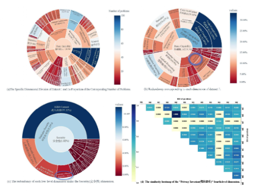 采用这种方法,我们对数据集 2 和数据集 3 进行了高质量的问题筛选过程。结果显示,数据集 2 的冗余率为 2.65%,而数据集 3 的冗余率为 14.88%。根据预先设定的标准,我们移除了冗余值大于 0.8 的问题。此外,我们还全面考虑了质量评分、维度权重、问题类型分布要求以及冗余情况。