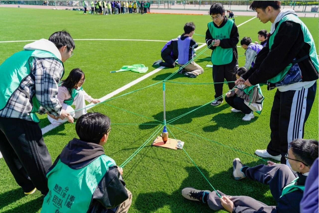 热身结束后,同学们被分为16个小组,各小组迅速投入到队名、队徽和口号的创作中。大家各抒己见、集思广益,从队名的构思到队徽的设计,再到口号的凝练,每一个环节都凝聚着团队的智慧与创意。随后,活动进入核心的项目体验环节,每4组组成一个方阵,在互相对抗、互有输赢的竞技氛围中,每组依次体验两个特色项目,在实践中锤炼协作能力、凝聚团队智慧。