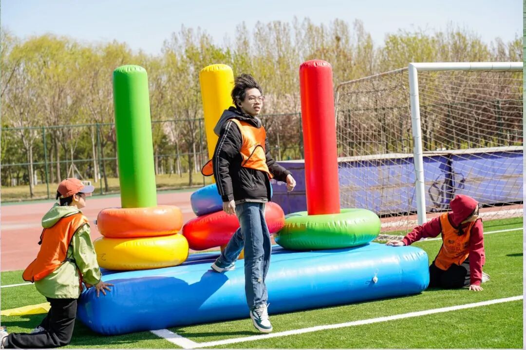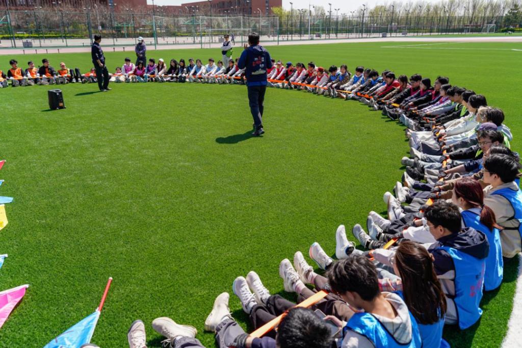 团队能量项目将整场活动推向高潮,工作人员将动力绳两端连接,全体同学伸直手臂、紧握绳索,齐心协力拉成一个整齐的圆圈,随后缓缓坐下,稳稳维持住动力绳圈。随后,在保护员的全程守护下,几位学子站上绳圈,在大家的共同支撑下直立匀速行走,每一步都承载着团队的信任与力量,每一次稳稳的支撑都彰显着团队的凝聚力。